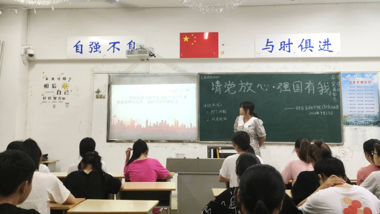 各班級團支書積極組織青年學子采用線上、線下相結合的形式靈活開展主題團日活動。線上開展班級以班級群讨論、線上“雲”觀看相關紀錄片片段、多媒體平台發表心得體會等形式,讓同學們集中學習習近平總書記“七一”重要講話精神并在班級群聊内讨論、分享所思所悟。習總書記對曆史的總結和對青年一代的殷殷期望,激發了團員青年聽黨話、感黨恩、跟黨走的意志和決心。線下開展班級則以合唱紅色歌曲、講述革命故事、朗誦青春報國詩篇等形式開展活動,青年學子們通過觀看《閃耀東方》《閃亮的坐标》電視專題片,啟發同學們探尋百年黨史中蘊藏的“青春密碼”,激勵更多青年學子在奮發有為中立時代潮頭,擔青春使命。